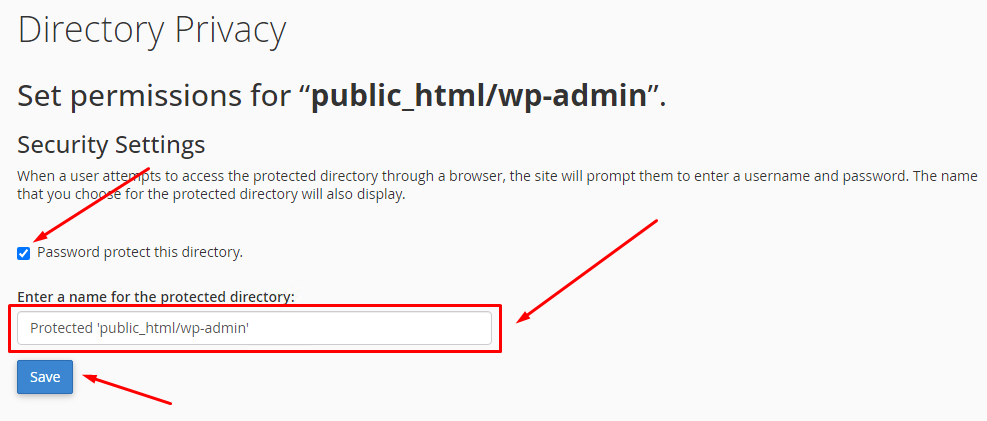 To set a password for accessing a folder, go to "Directory Privacy" in your cPanel:
