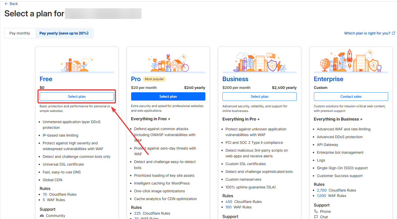 Выберите тарифный план обслуживания для домена Free будет достаточно для базовых функций