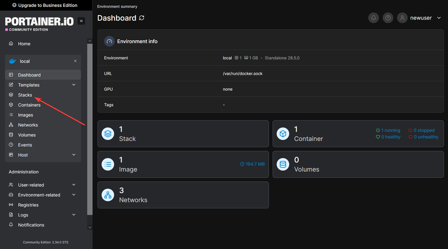 Дождитесь завершения создания стека с контейнерами. И после завершения вы можете войти в стек.