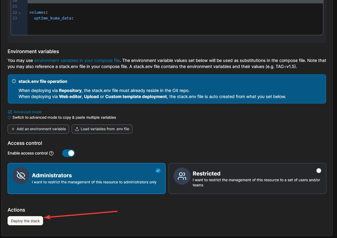 Wait for the stack with containers to be created. After completion, you can enter the stack.