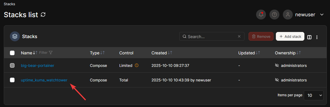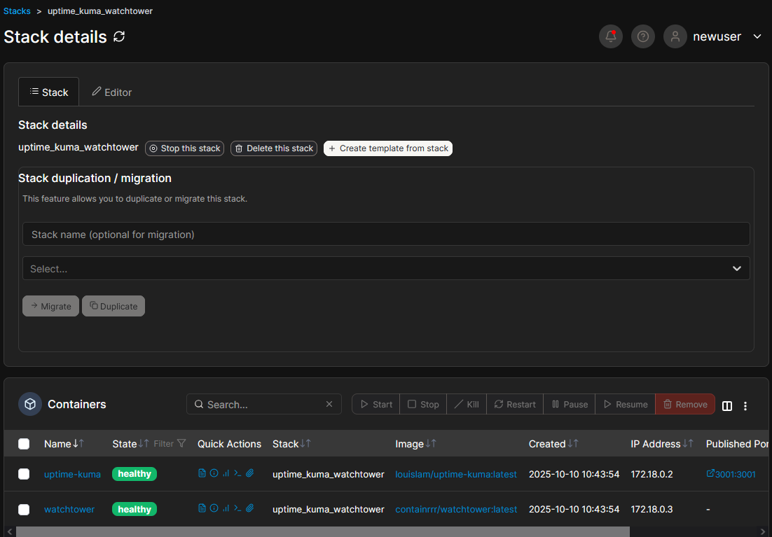 Зачекайте завершення створення стеку з контейнерами. І після завершення ви можете увійти в стек.
