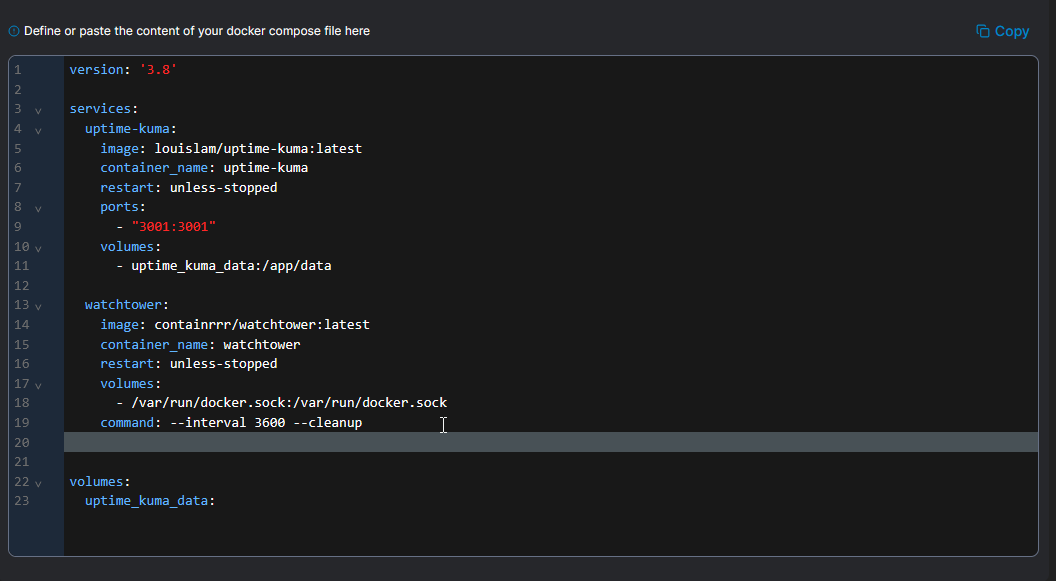 1. Вписати код docker-compose.yml вручну через Web editor.