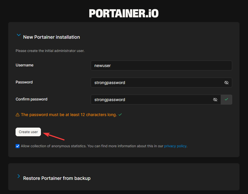 Введите новые данные и нажмите кнопку "Создать пользователя"